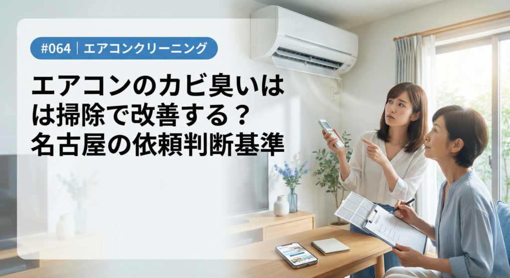 この記事では、まずカビ臭いにおいが出やすい原因を簡潔に整理したうえで、自分で試せる範囲と、依頼判断に進みやすいケースを分けて見ていきます。名古屋で依頼を考える場合に、どこを確認しておくと判断しやすいかもあわせて整理します。