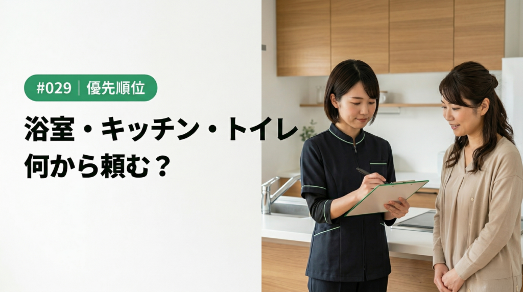 名古屋の共働き・子育て世帯が迷いやすいのは、浴室・キッチン・トイレのどこから頼むべきか。この記事では、3つの質問で優先順位が分かる診断と、単品/セット/段階的依頼の選び方を整理します。「今回は浴室だけ → 次回キッチン」みたいに、家計に合わせて進める選択肢も含めて判断できる形にします。