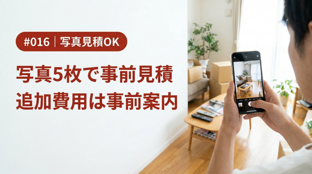 - 現地の状況が写真と大きく異なる場合:再見積が必要になることがあります(その場合も事前説明・同意が前提)