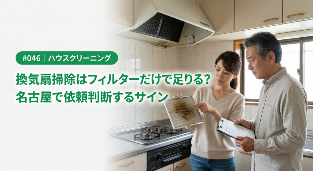 そこで今回は、換気扇掃除はフィルターだけで足りるのかを見直し、足りる状態と足りない状態の違いを整理します。名古屋で依頼判断に進む前に確認したいポイントもあわせて見ていきます。